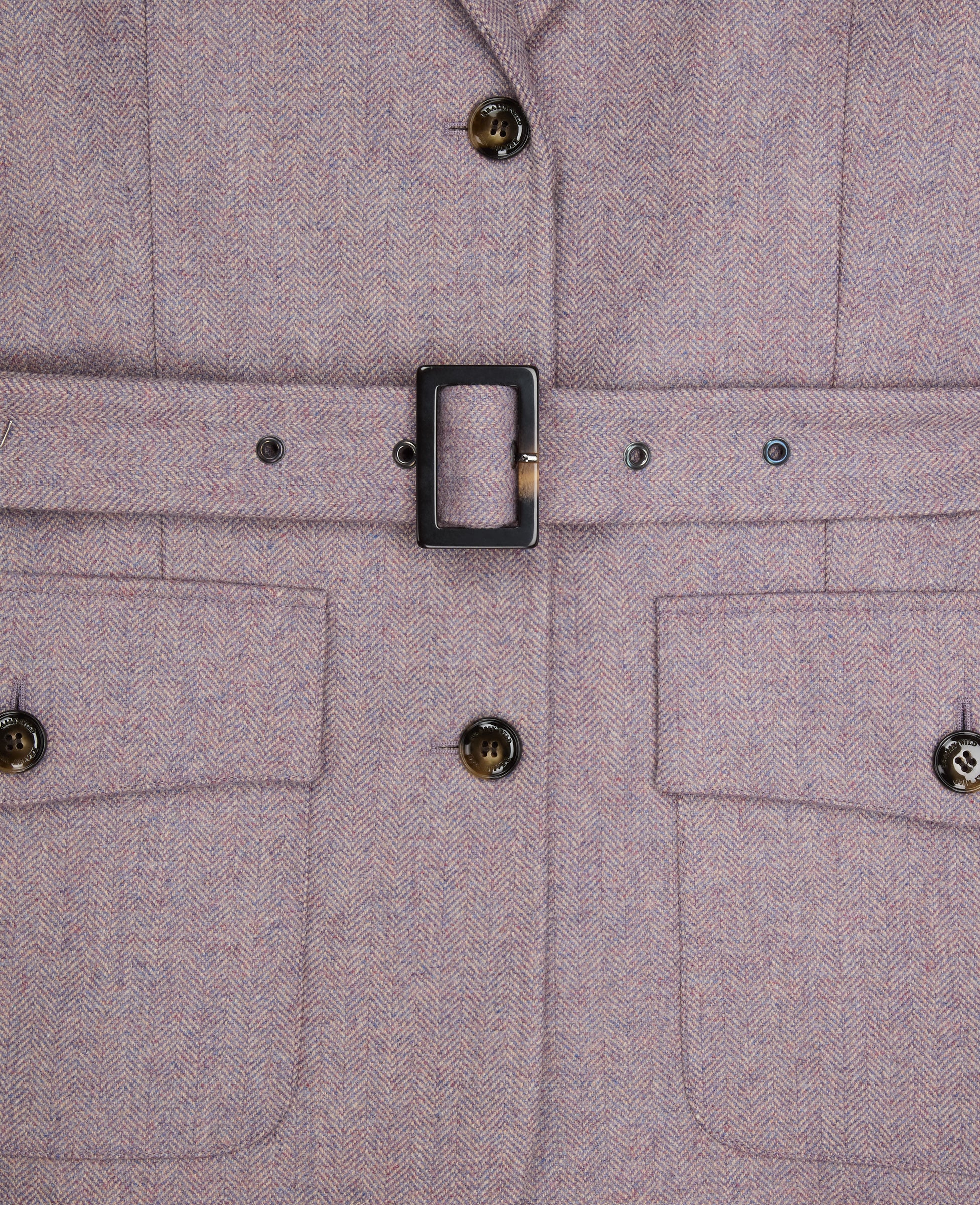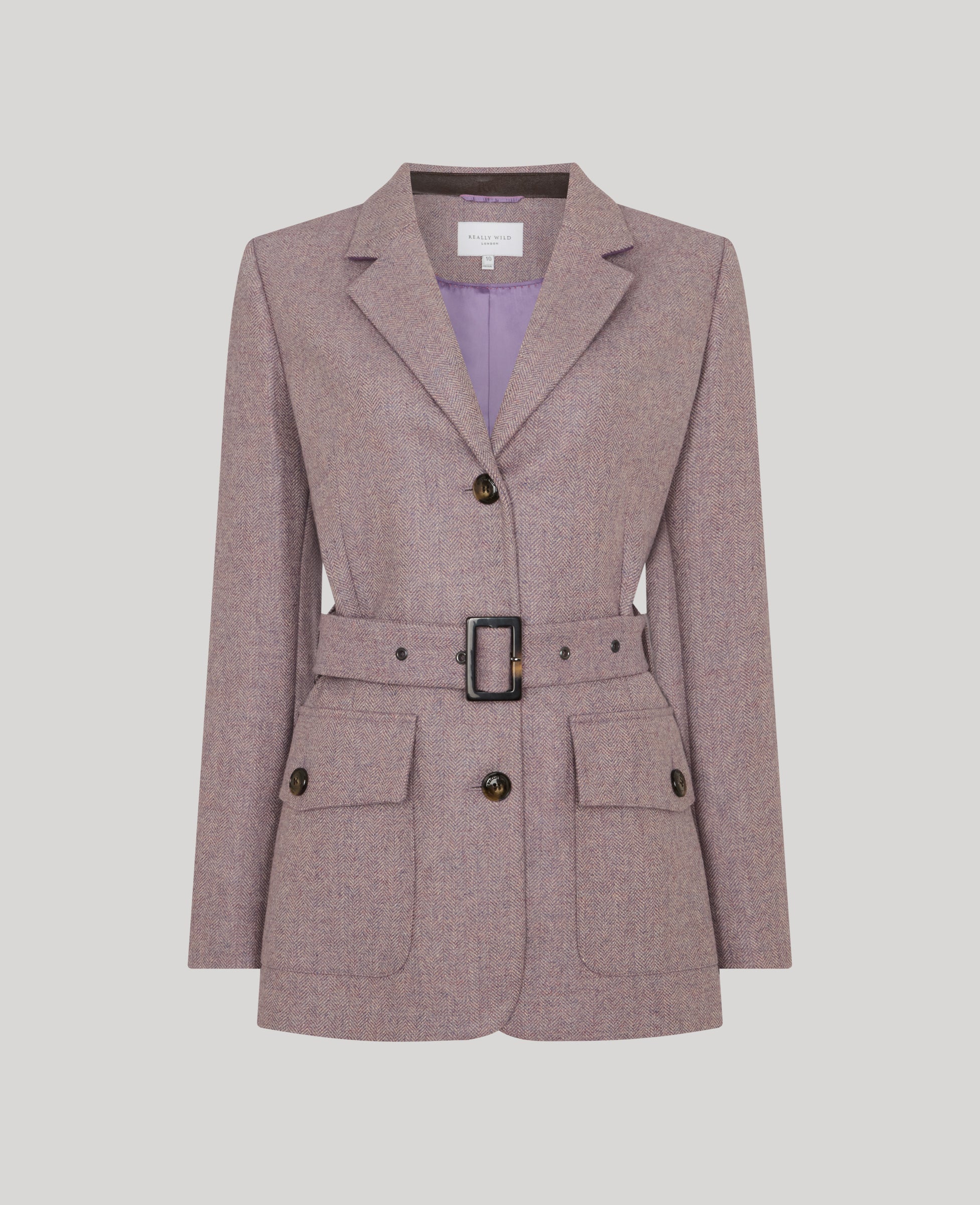 Iris Jacket in Heather Purple Herringbone with Patch Pockets and a Belted Waist