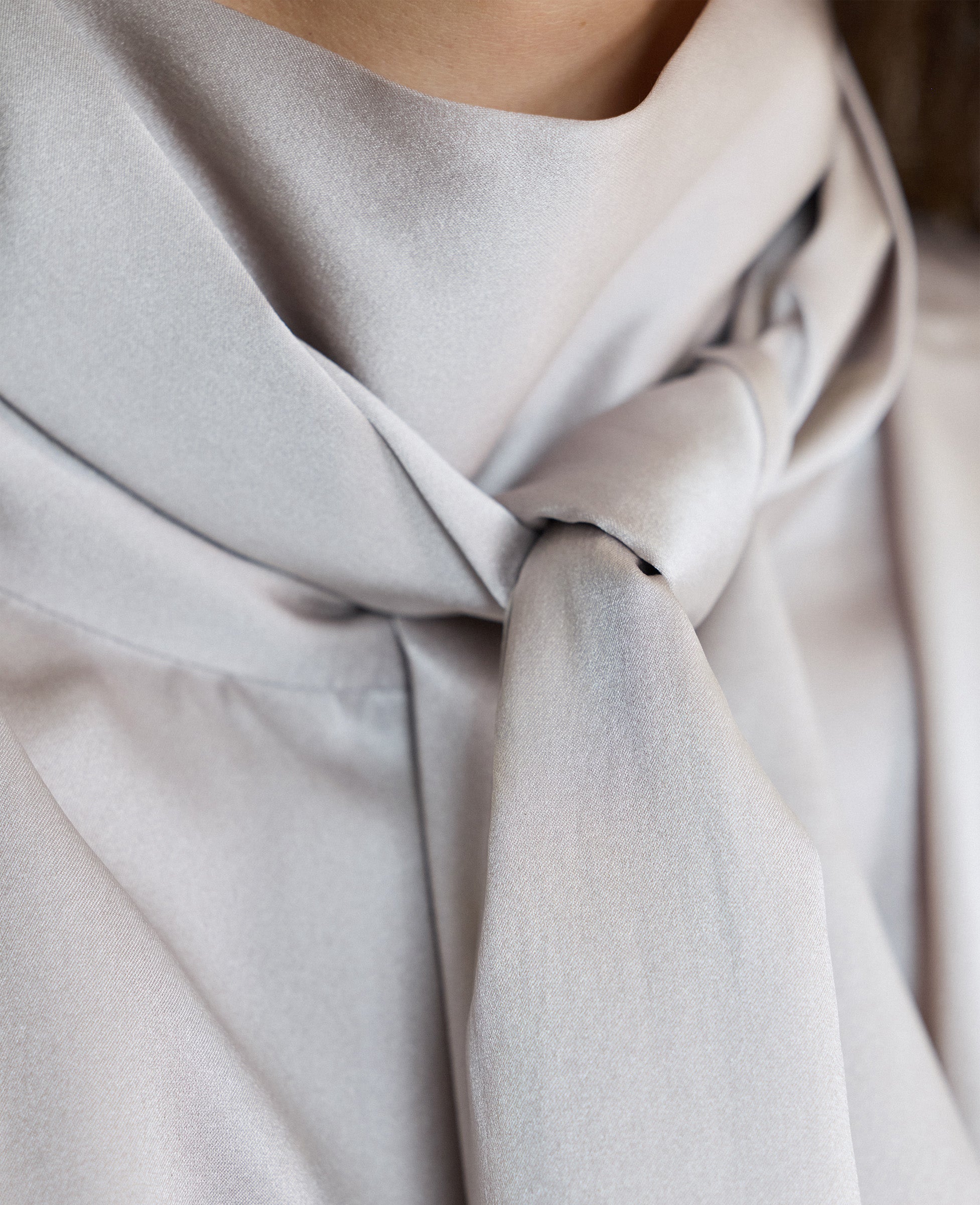 100% Silk Cadogan Tie-Neck Blouse - Cappuccino