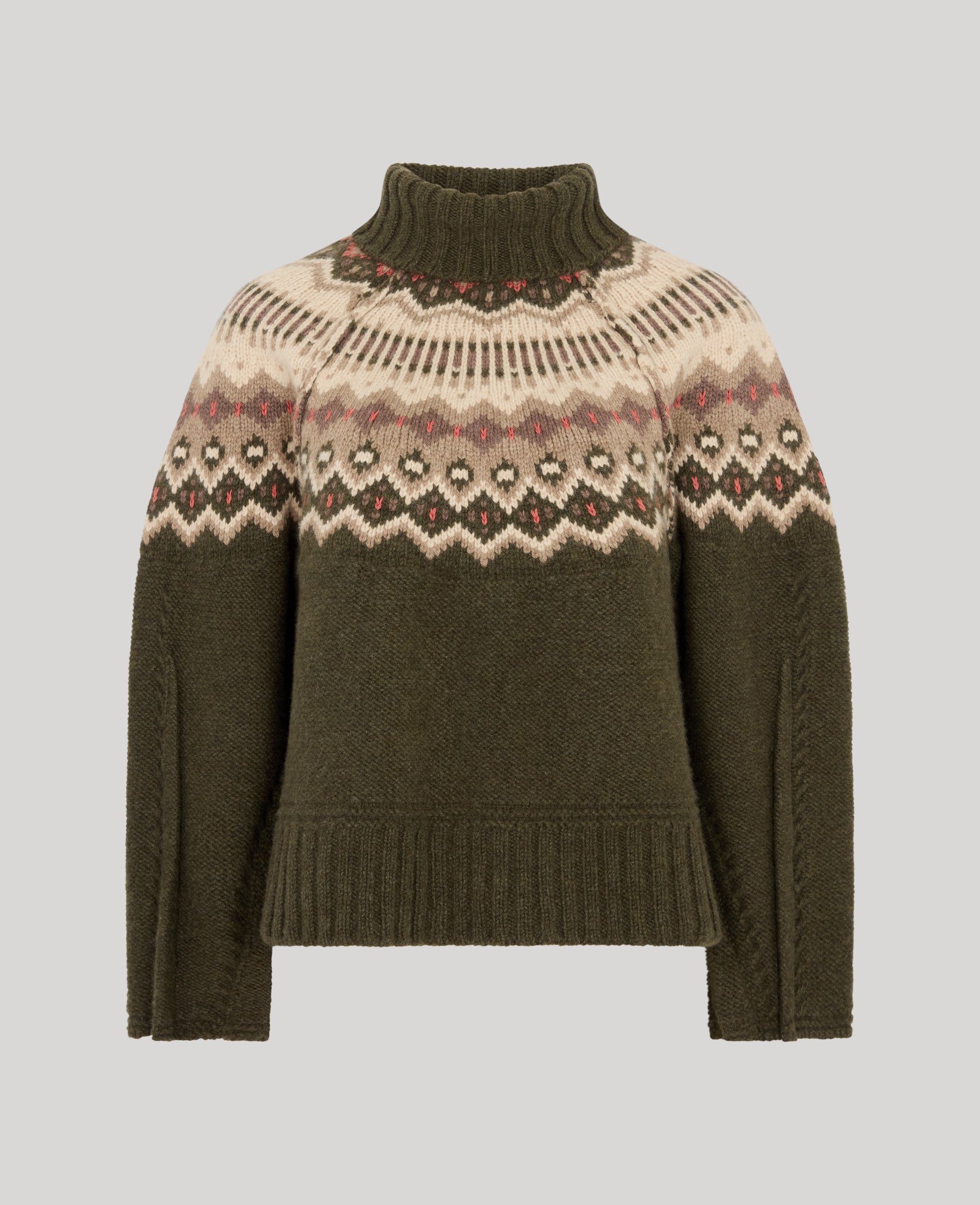 This statement sweater draws on heritage Fair Isle traditions to evoke the romance of Highland winters. With intricate colourwork and hand-finished details, it reflects the finest British craftsmanship - a timeless piece made to last for years to come.
