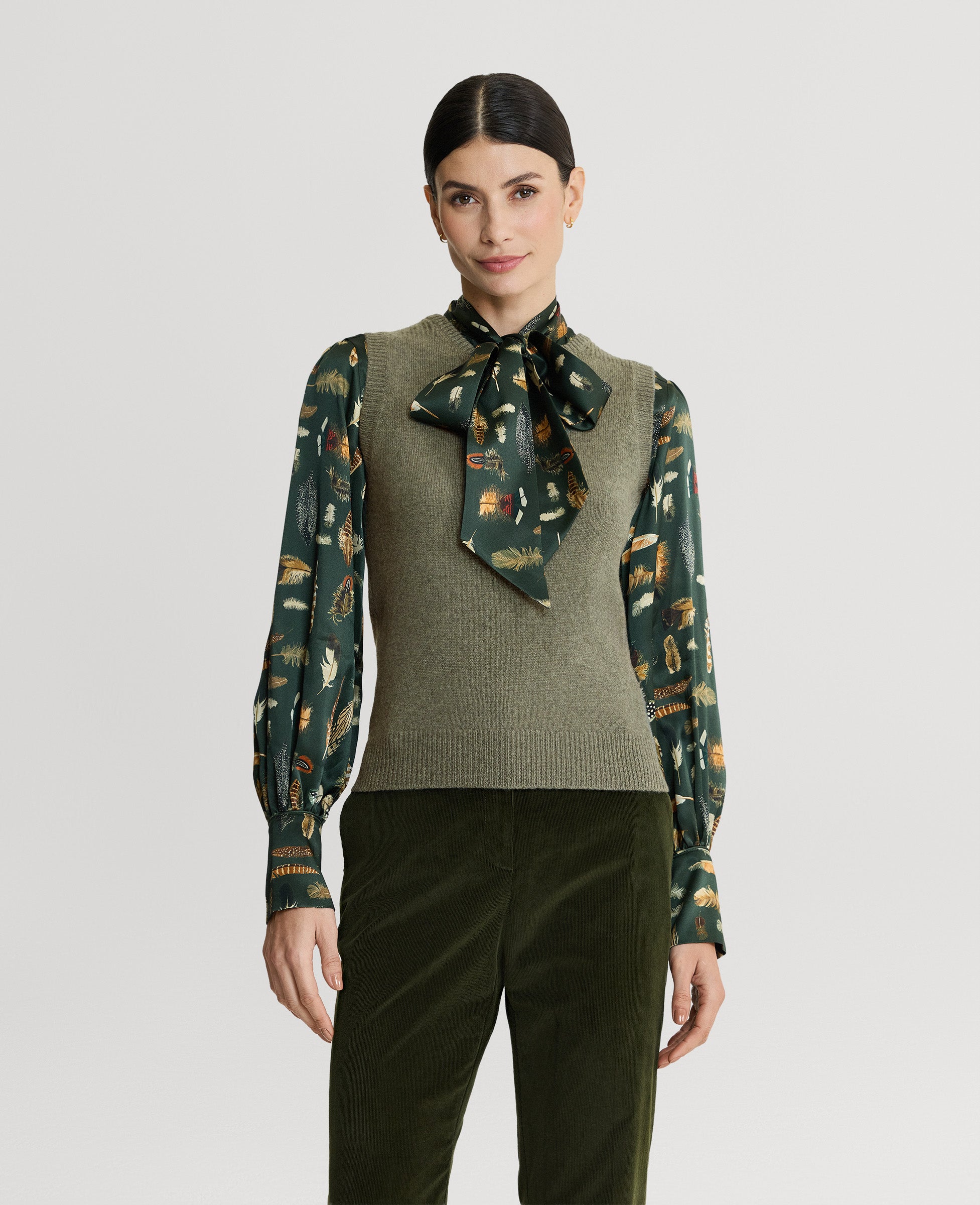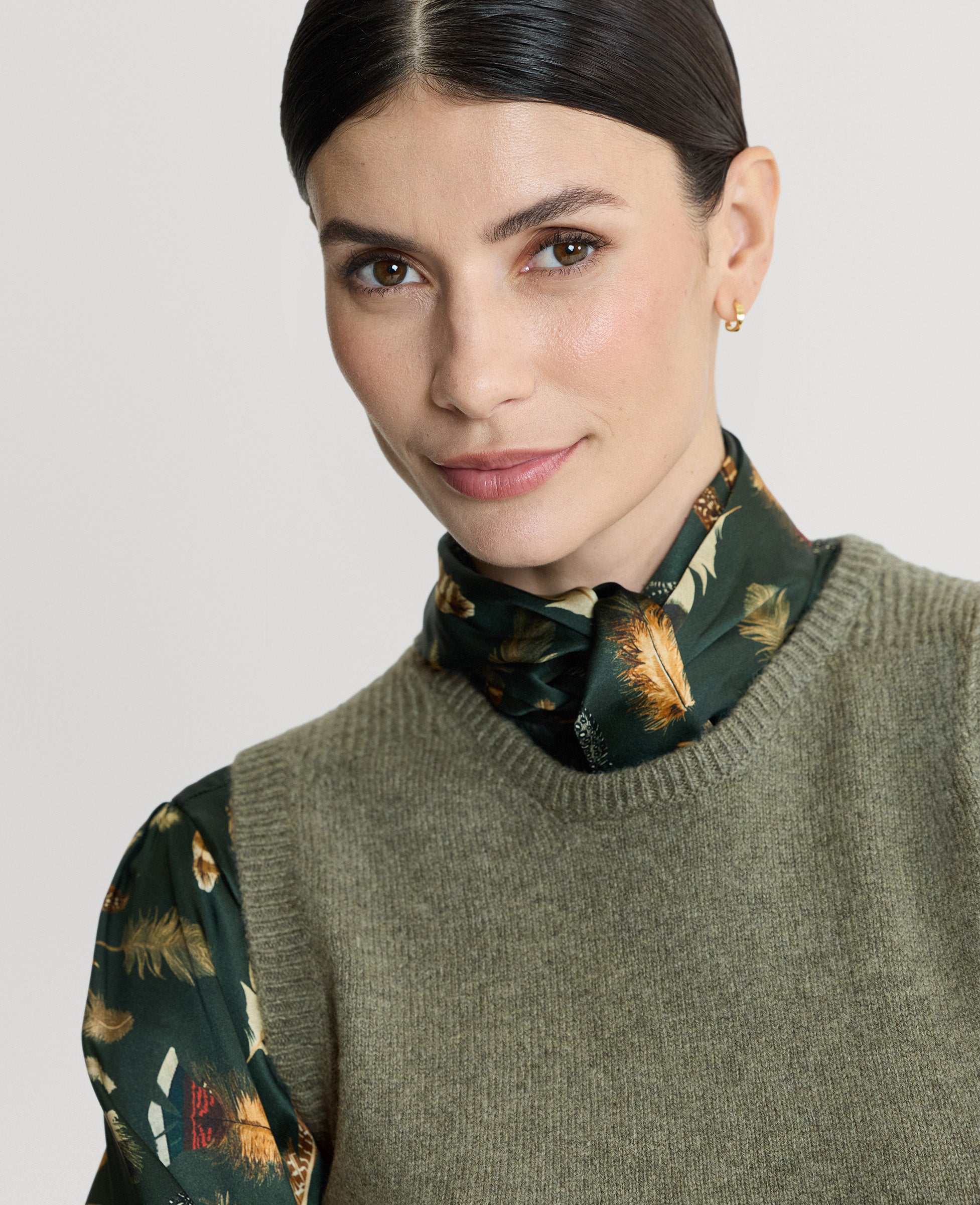 100% Supersoft Lambswool Kinalba Round-Neck Tank – Moss Green
