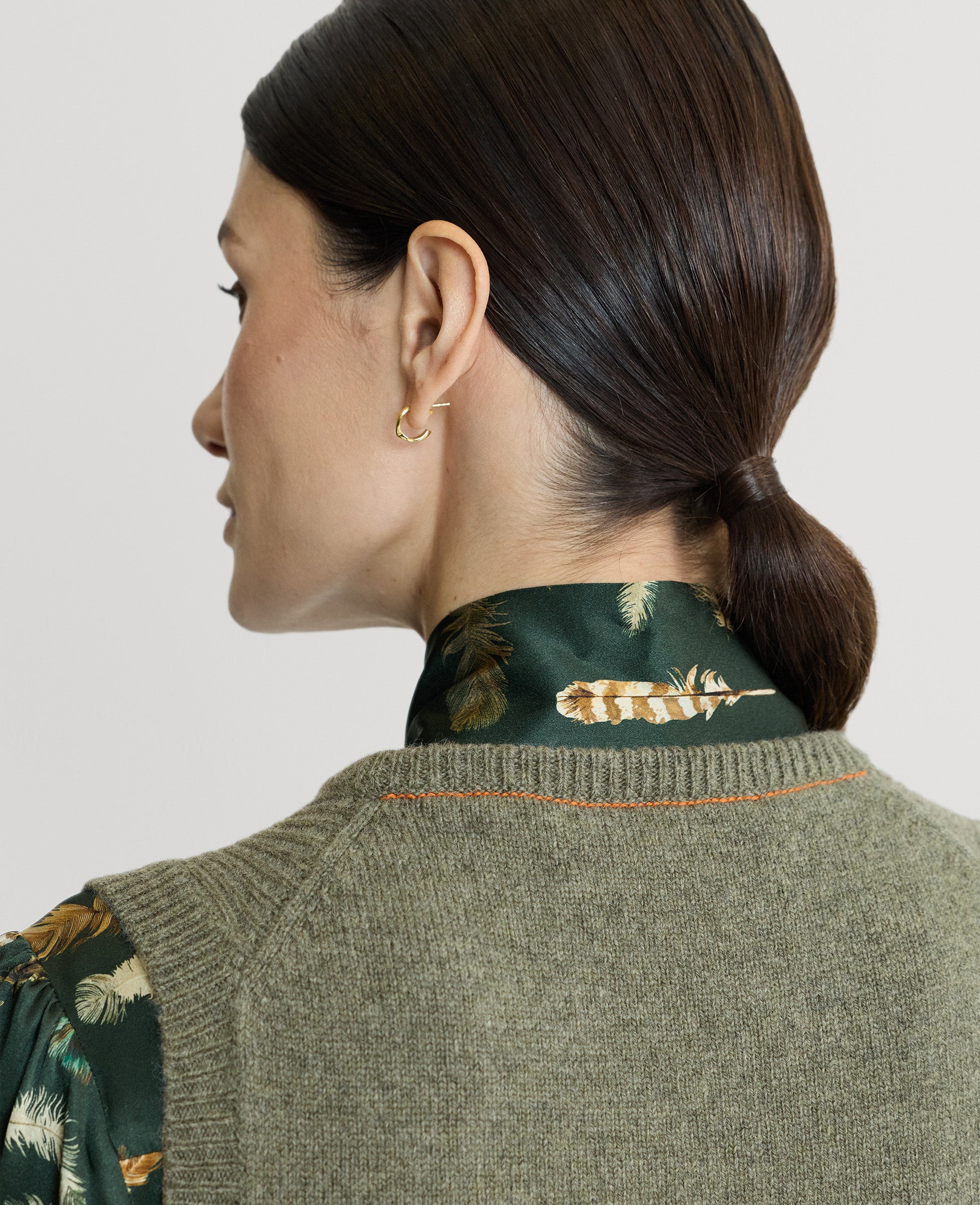 Made in Scotland from 100% supersoft knitted lambswool, our Kinalba tank in autumnal moss green is designed with a classic crew neck. Intended for warmth and layering in the field and finished with Alcantara shoulder detailing for extra durability. Pair with our Highlander Field Coat, our Beaufort Parka and any of our utility trousers.