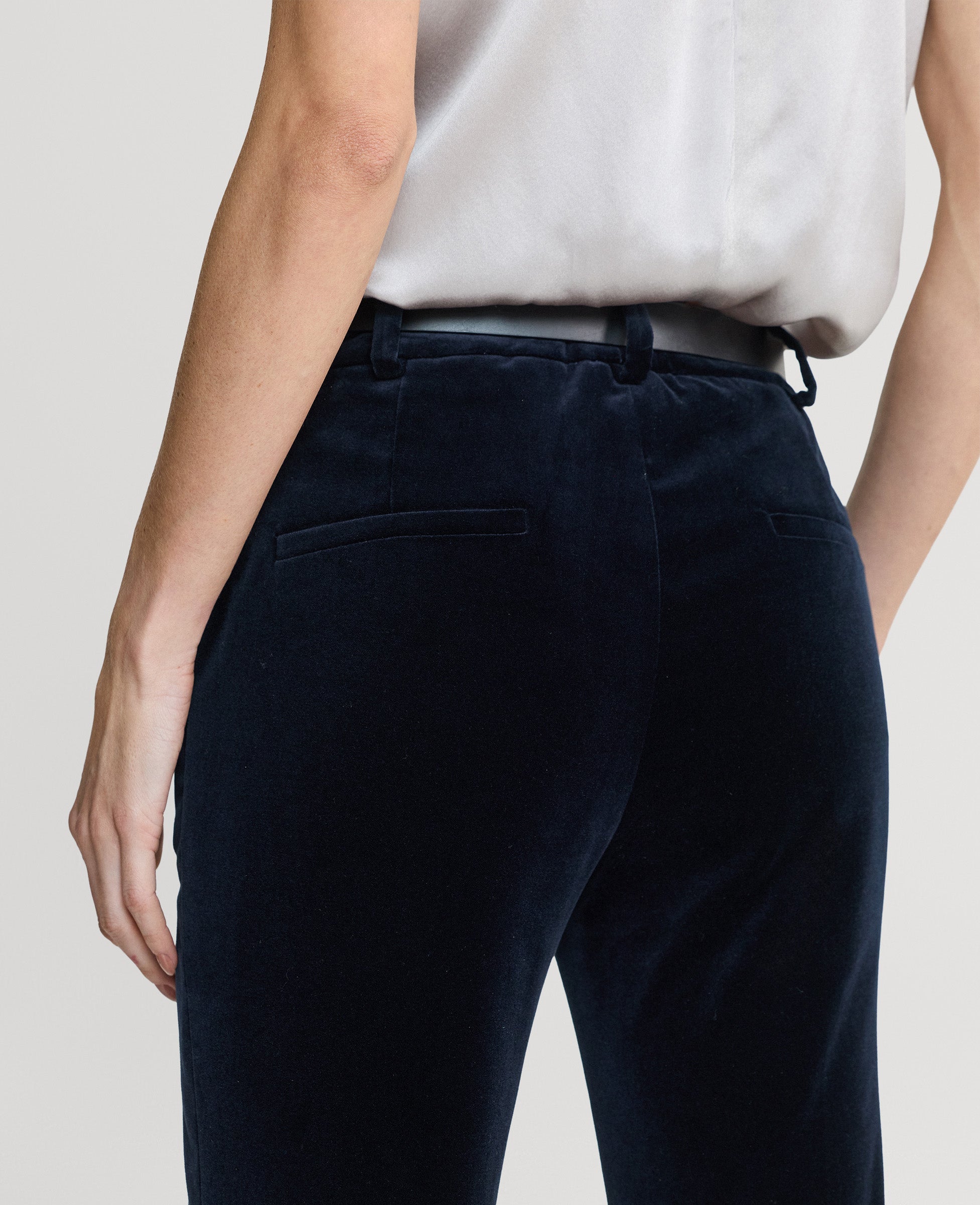 Designed in striking midnight blue, our velvet Mayfair Trousers are thoughtfully cut and designed to enhance and flatter. Pair with any of our 100% silk blouses, and complete the look with a matching tuxedo and waistcoat. Lined for extra comfort.