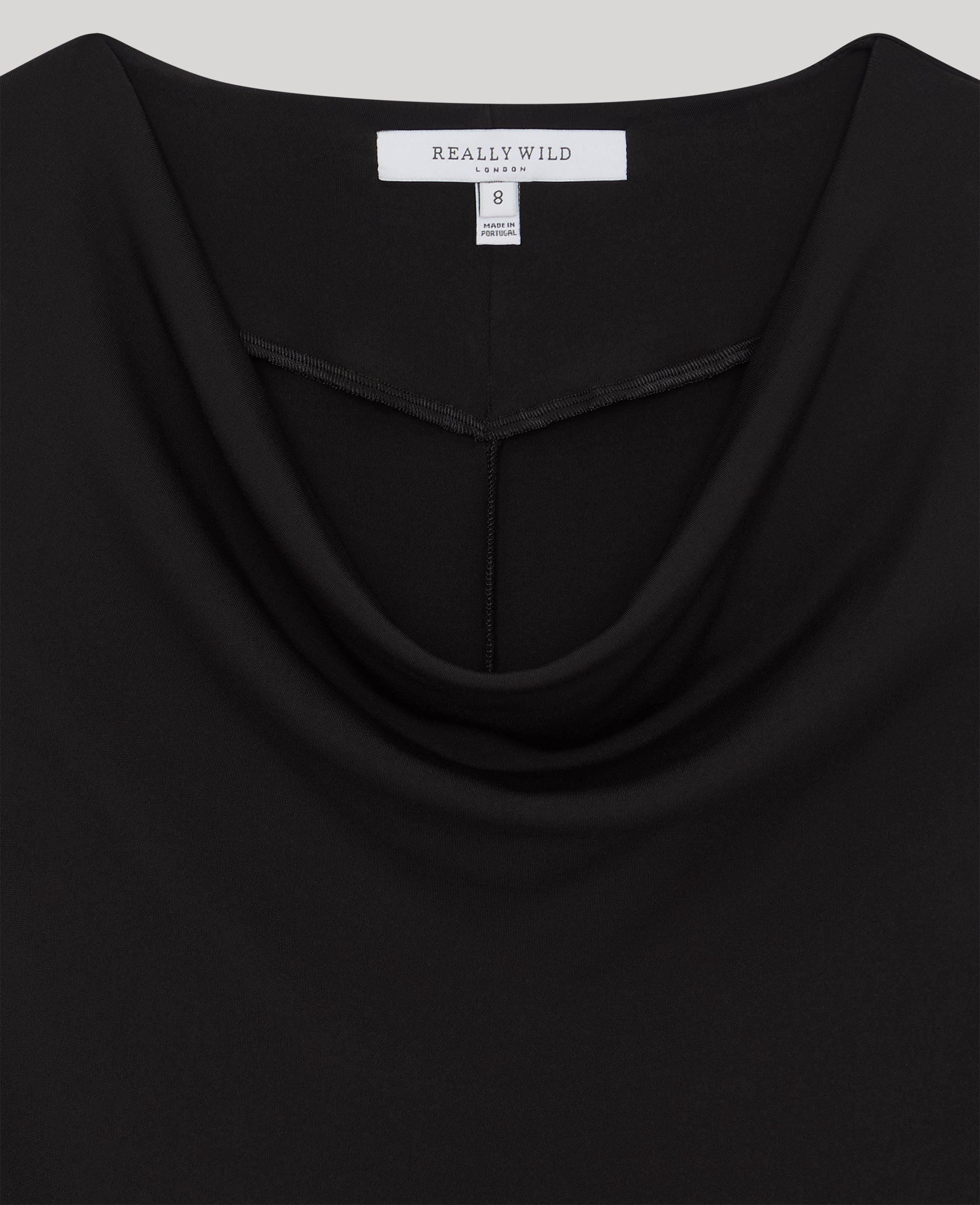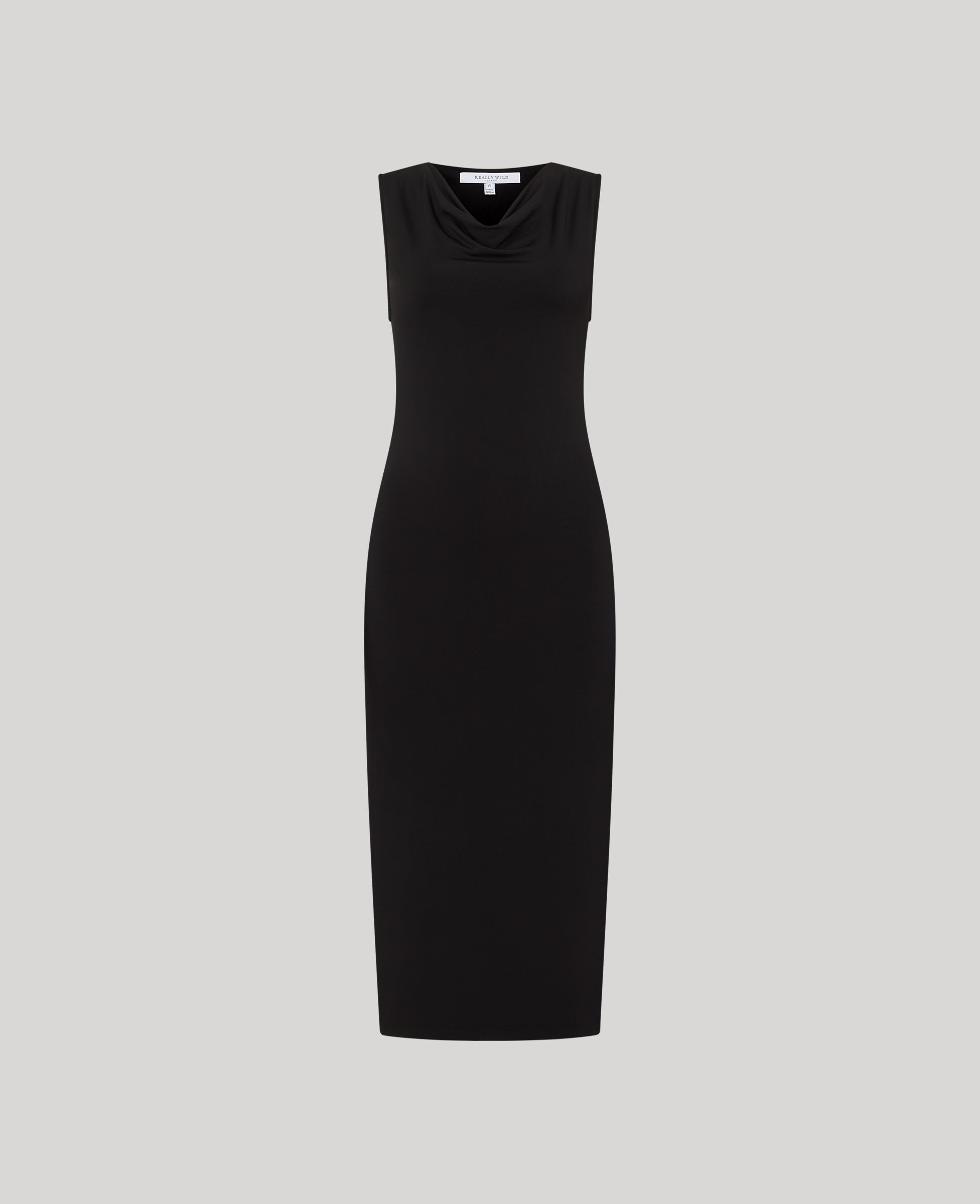 Designed to flatter the feminine form, the Rosa jersey dress transitions effortlessly from smart daywear to elegant evening occasions. Crafted with a graceful cowl neckline and a subtle A-line cut, it offers a beautifully balanced silhouette. Pair with our black Audrey three quarter length coat or style with one of our signature belts or cummerbunds for a versatile and timeless look.