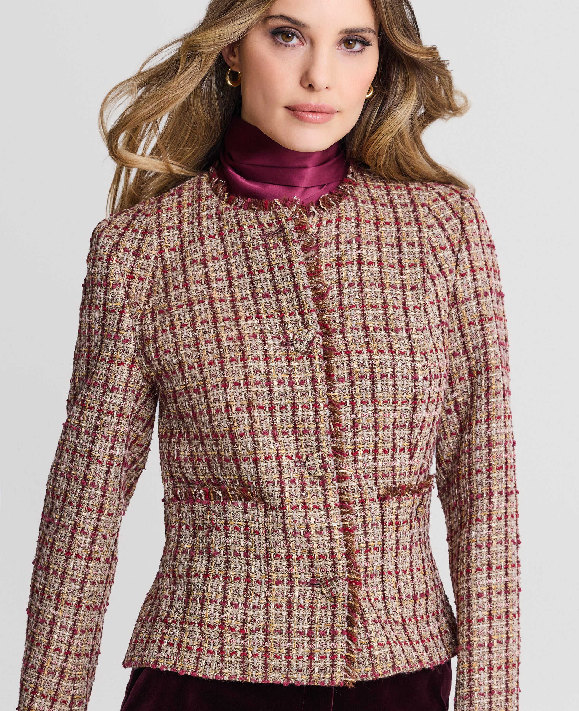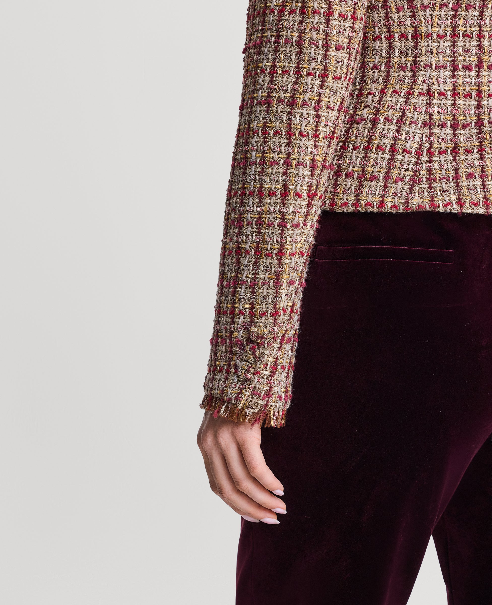 A modern feminine take on a classic suit jacket, the Audrey jacket is the perfect layer for both smart and casual looks. Crafted in a red and gold boucle with subtle glitter and frayed edges, it works beautifully with jeans and a tee, or teamed with one of our Somerset shift dresses. It is a timeless piece you will reach for season after season.