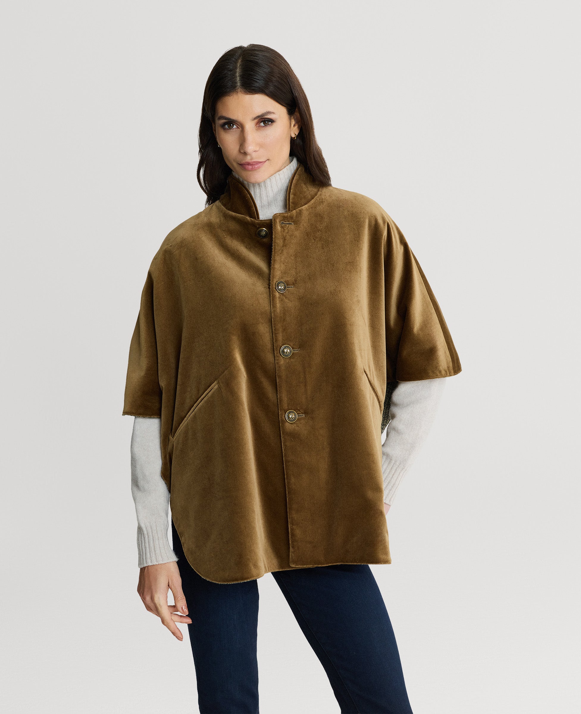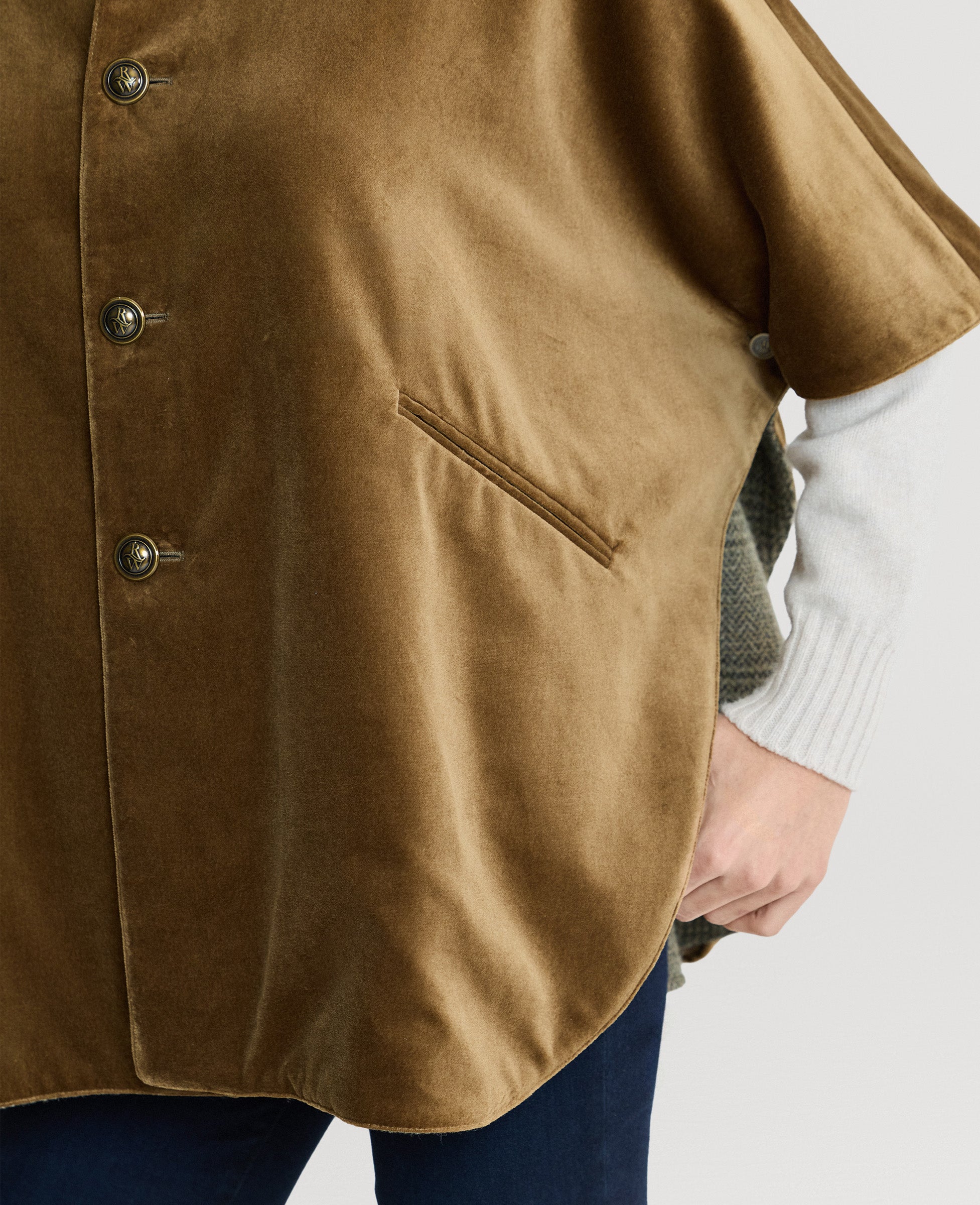 Made from 100% wool tweed woven in Scotland, our reversible Beaufort Cape is designed to move effortlessly from country days to elegant evenings. Pair with our casual trousers or elevate with velvets and cords. Finished with a gold velvet lining and muted gold embossed RW buttons, this is the perfect travel companion.