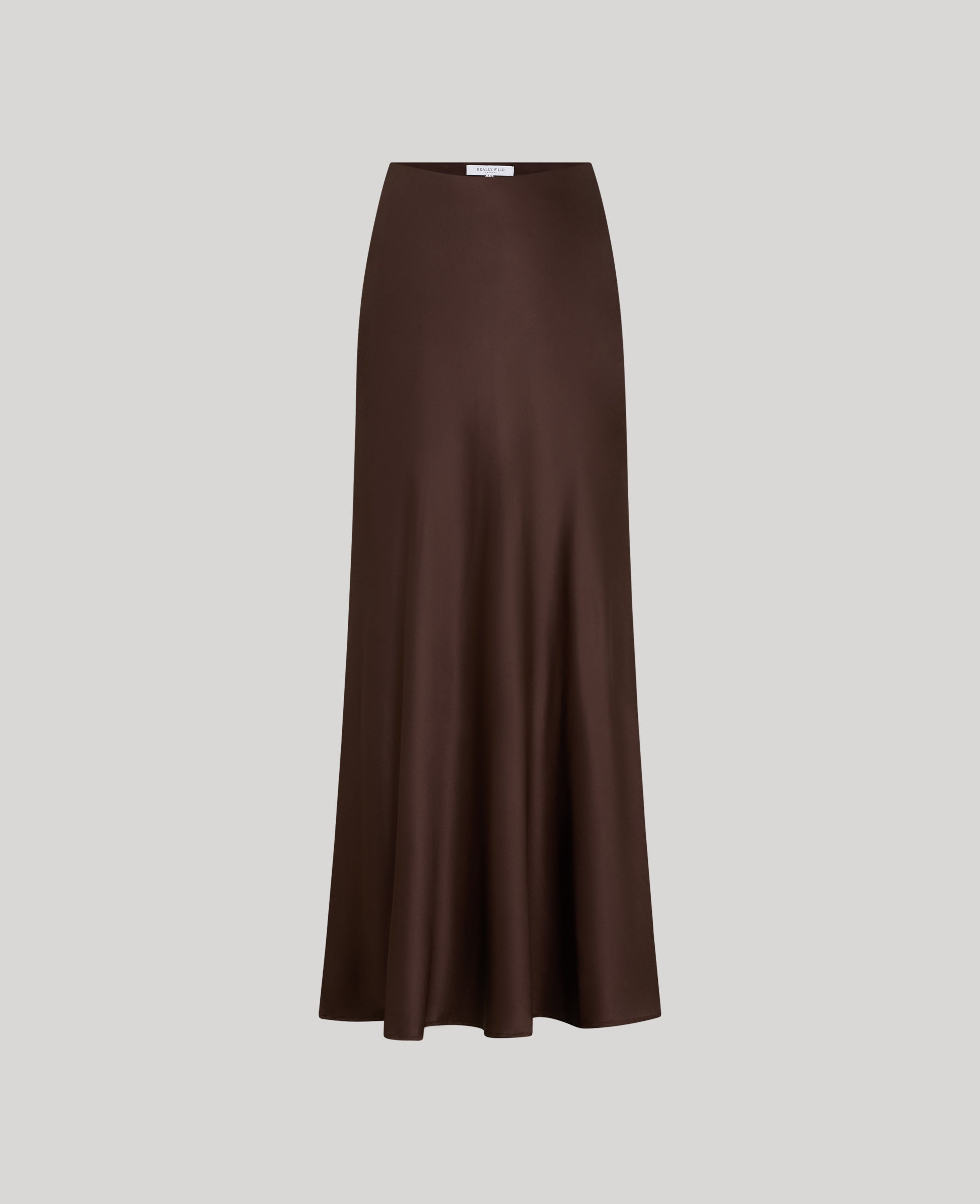 100% Silk Satin Blaire Maxi Skirt - Chocolate