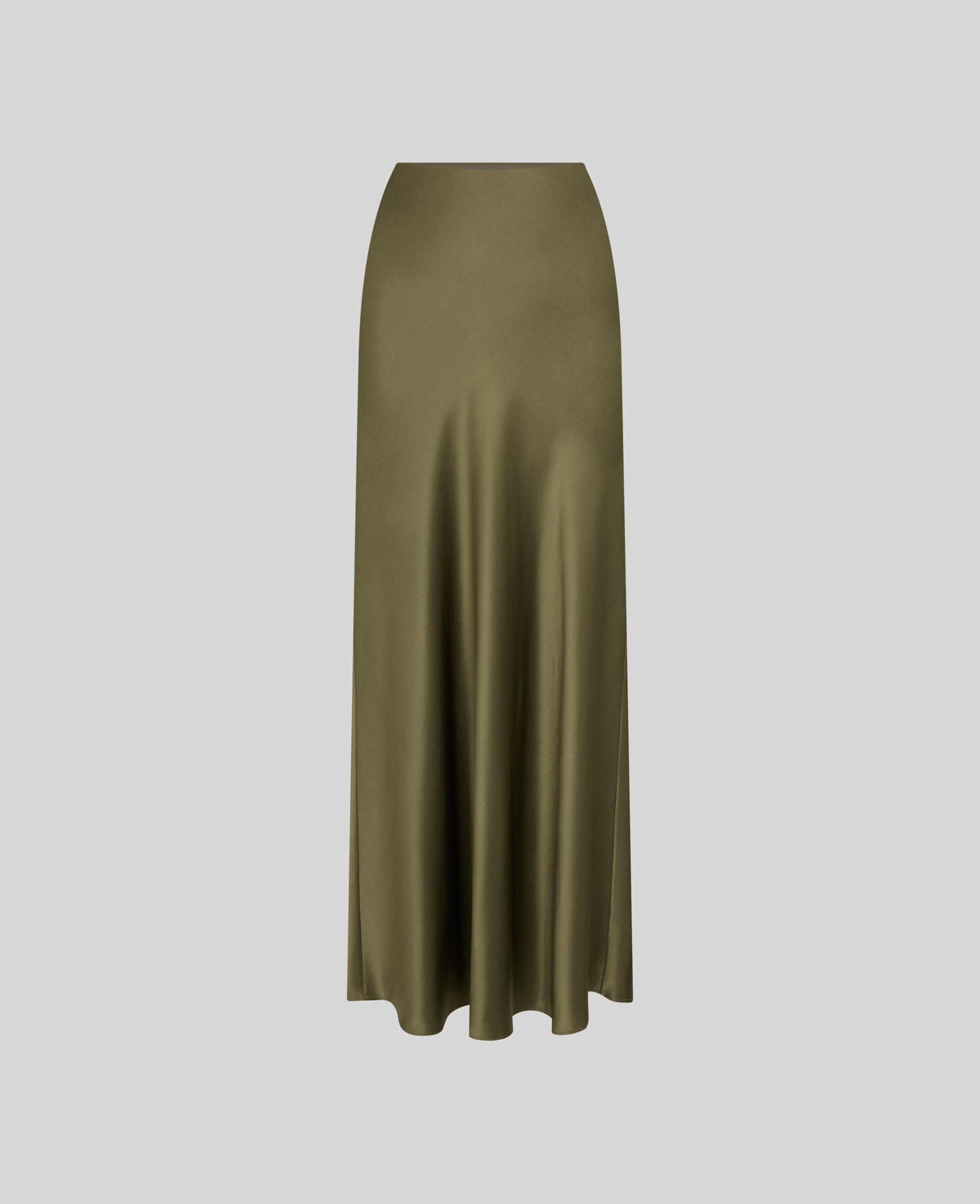 100% Silk Satin Blaire Maxi Skirt - Olive Green