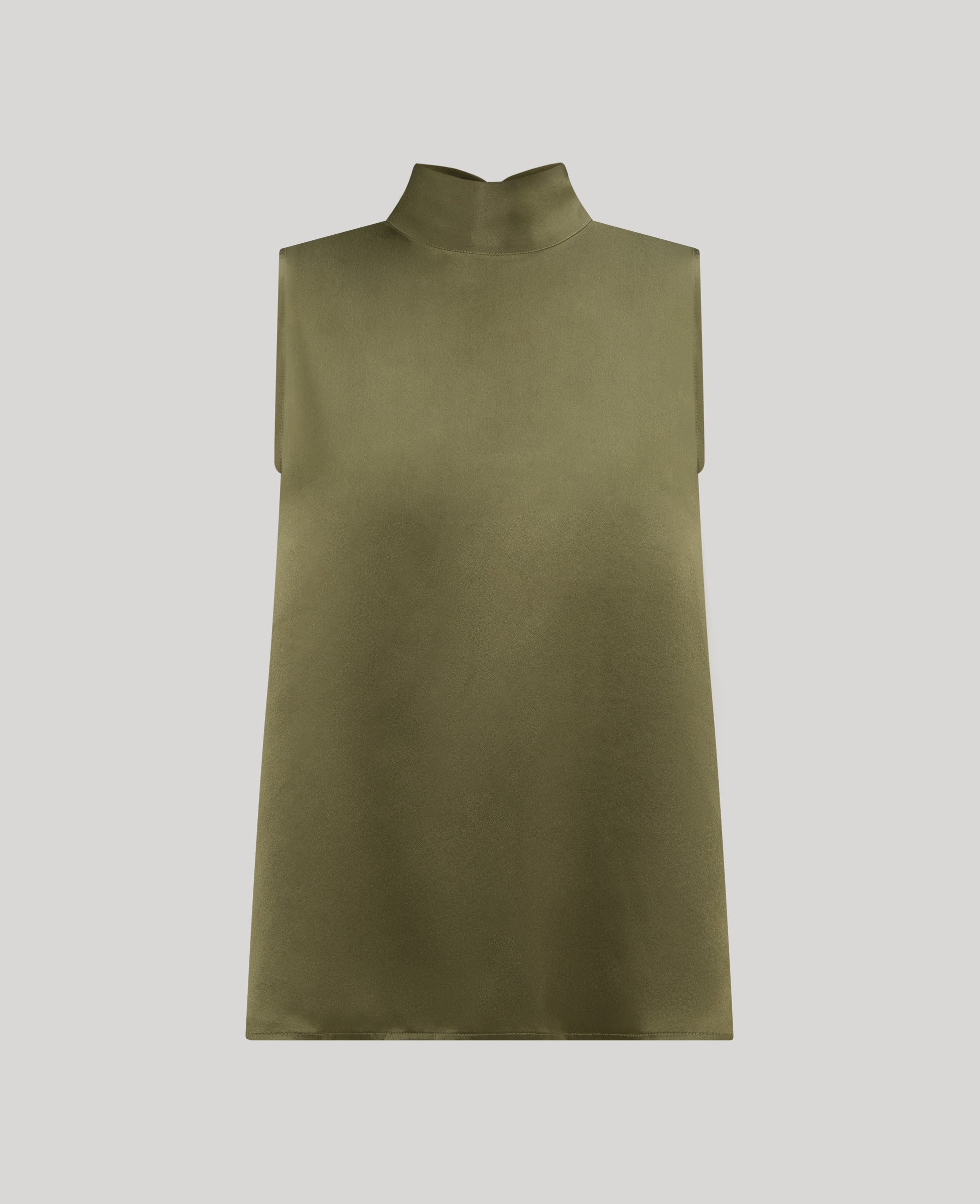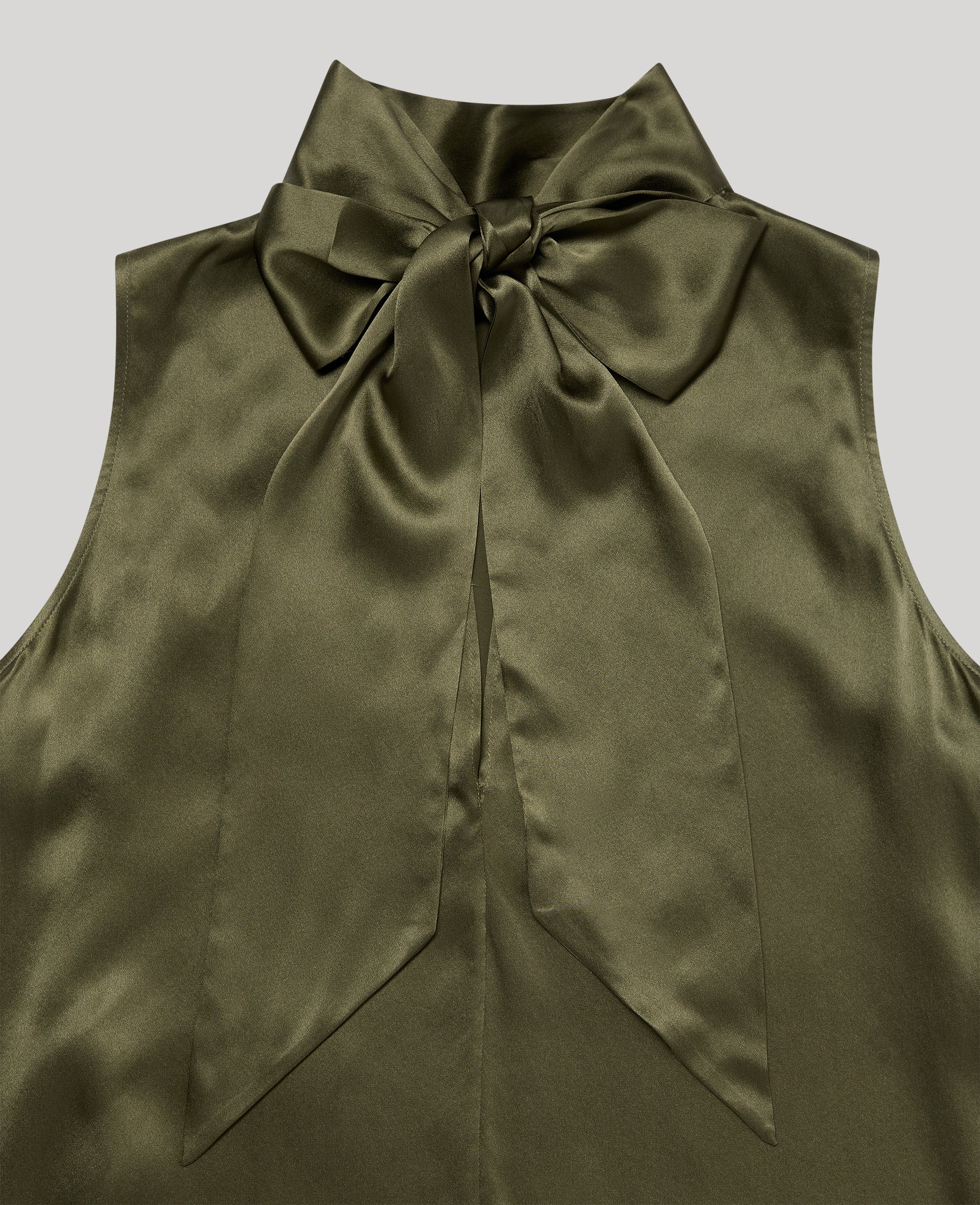 100% Silk Cadogan Sleeveless Tie-Neck Blouse – Sage Green