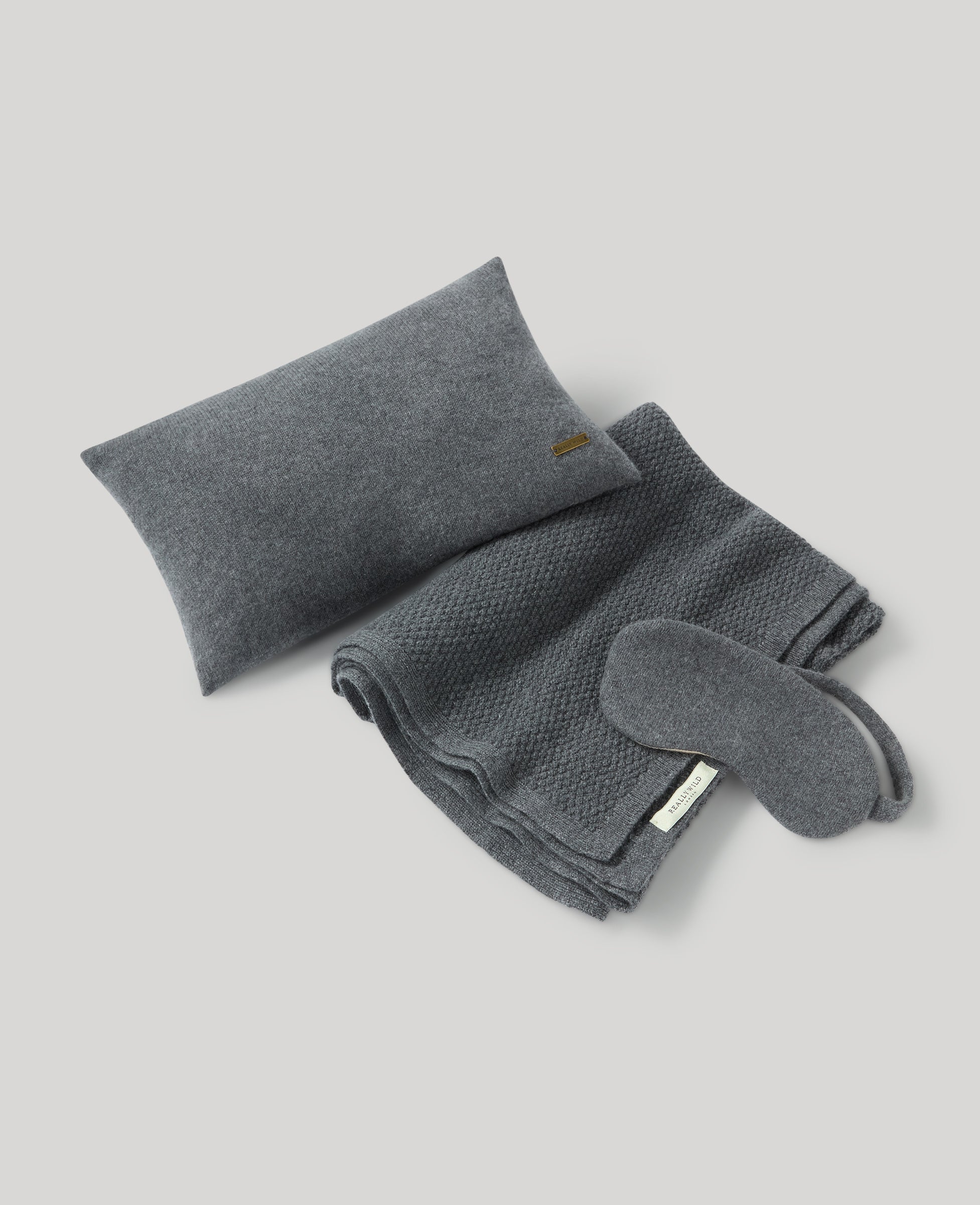 Made in Scotland from 100% cashmere, our travel set in cosy grey comprises a cashmere-silk lined eye mask and poncho. Ultra soft and featherlight for packing neatly into weekend luggage, or to indulge with during air travel. The poncho packs neatly into a matching cashmere pouch, which can also be used for travel essentials or doubled up as a travel pillow.