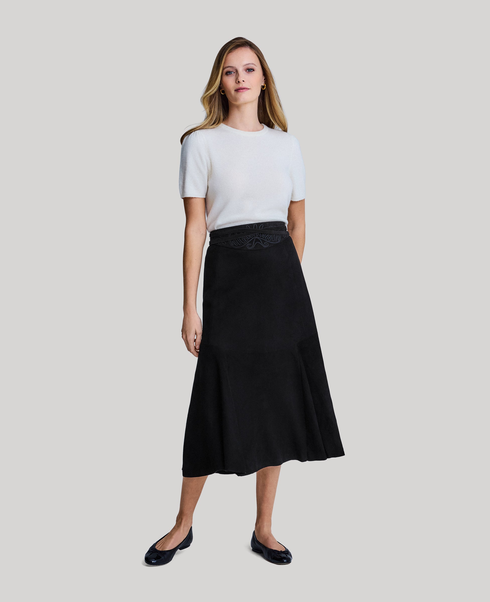 Made in London, our Embroidered Cummerbund is an elevated take on our classics. Designed with embroidery that is dyed-to-match, it accentuates the waist and flatters the feminine shape. The perfect accessory for any evening look, pair with our black silk skirts and trousers.