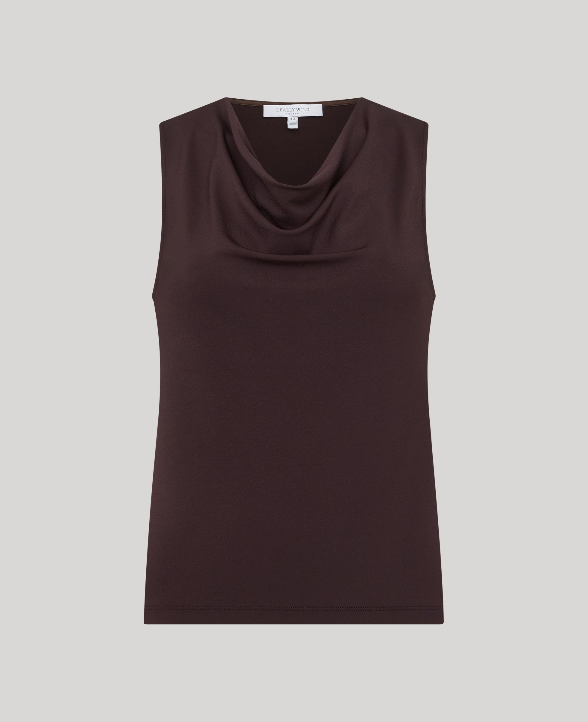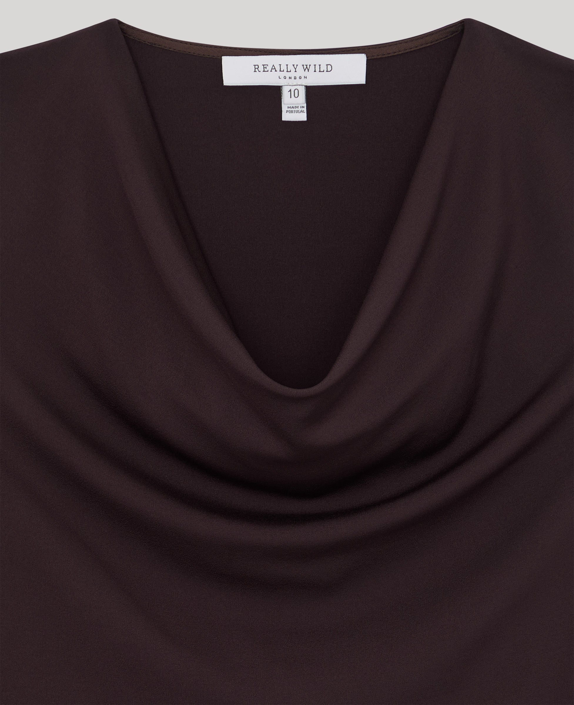 Made from 100% silk, our Eton cowl-neck blouse is a simple, sleeveless statement piece for elegant evening wear. Designed in rich chocolate brown, pair with our velvet Mayfair trousers, a silk Blaire skirt, or our Kensington jacket. With a classic cowl drape at the neck this is an ideal piece for layering this season.