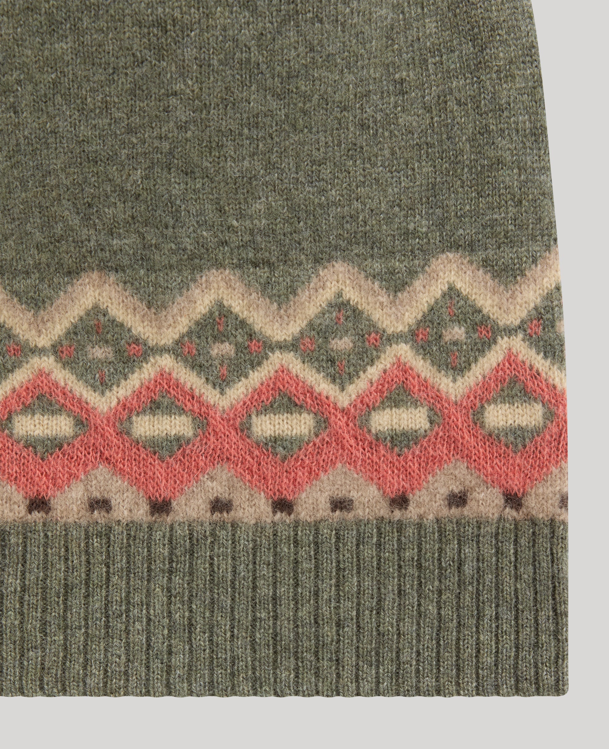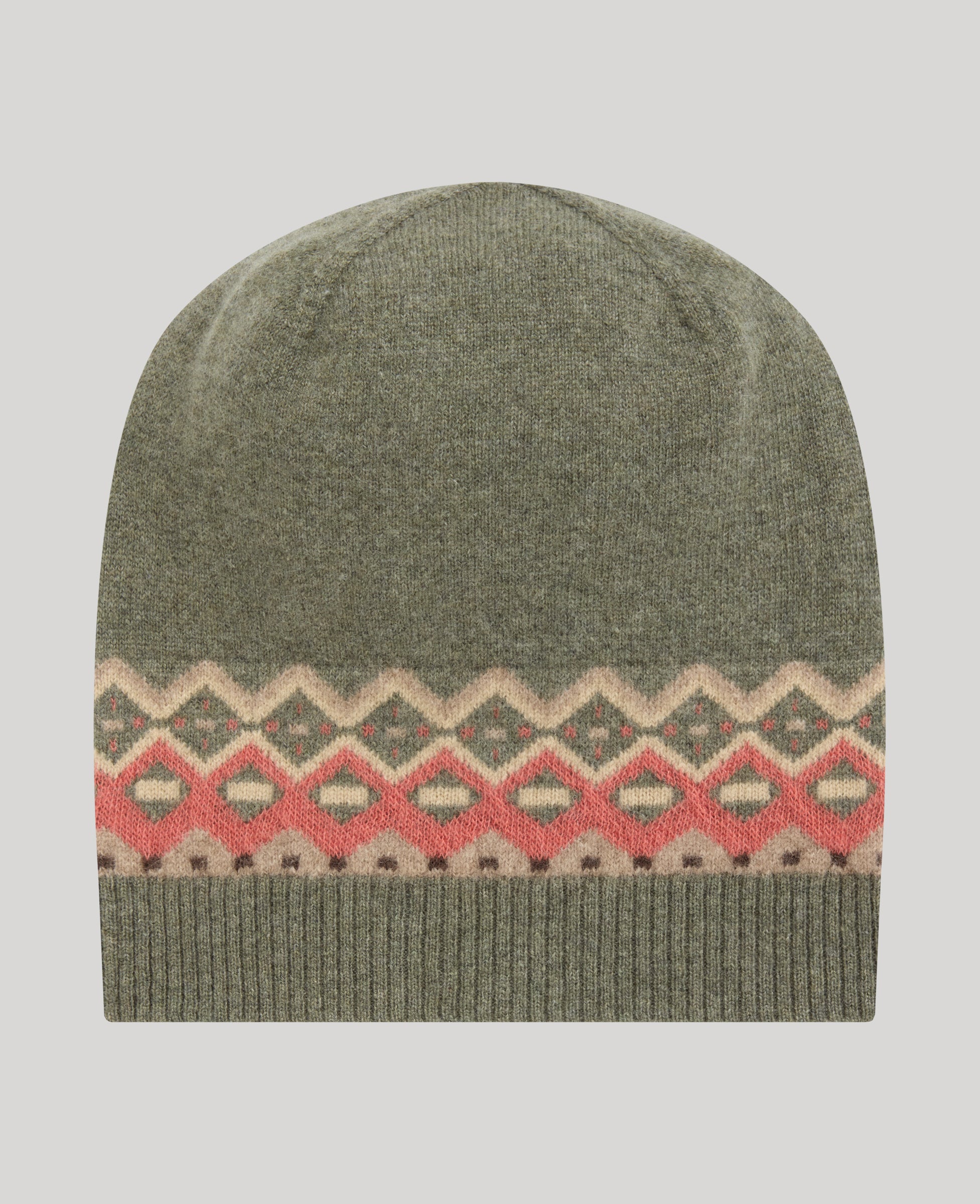 100% Cashmere Fairisle Beanie - Loden Green