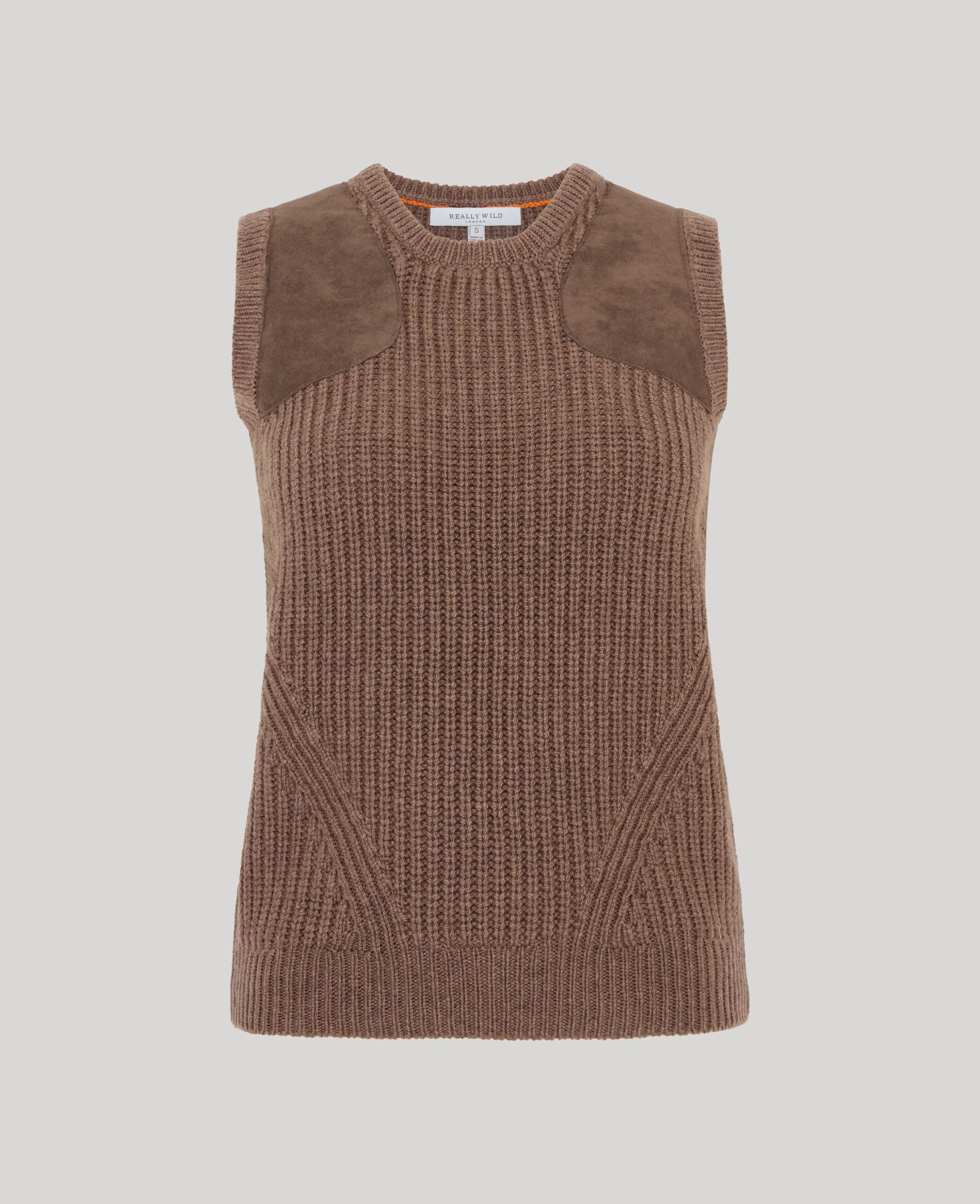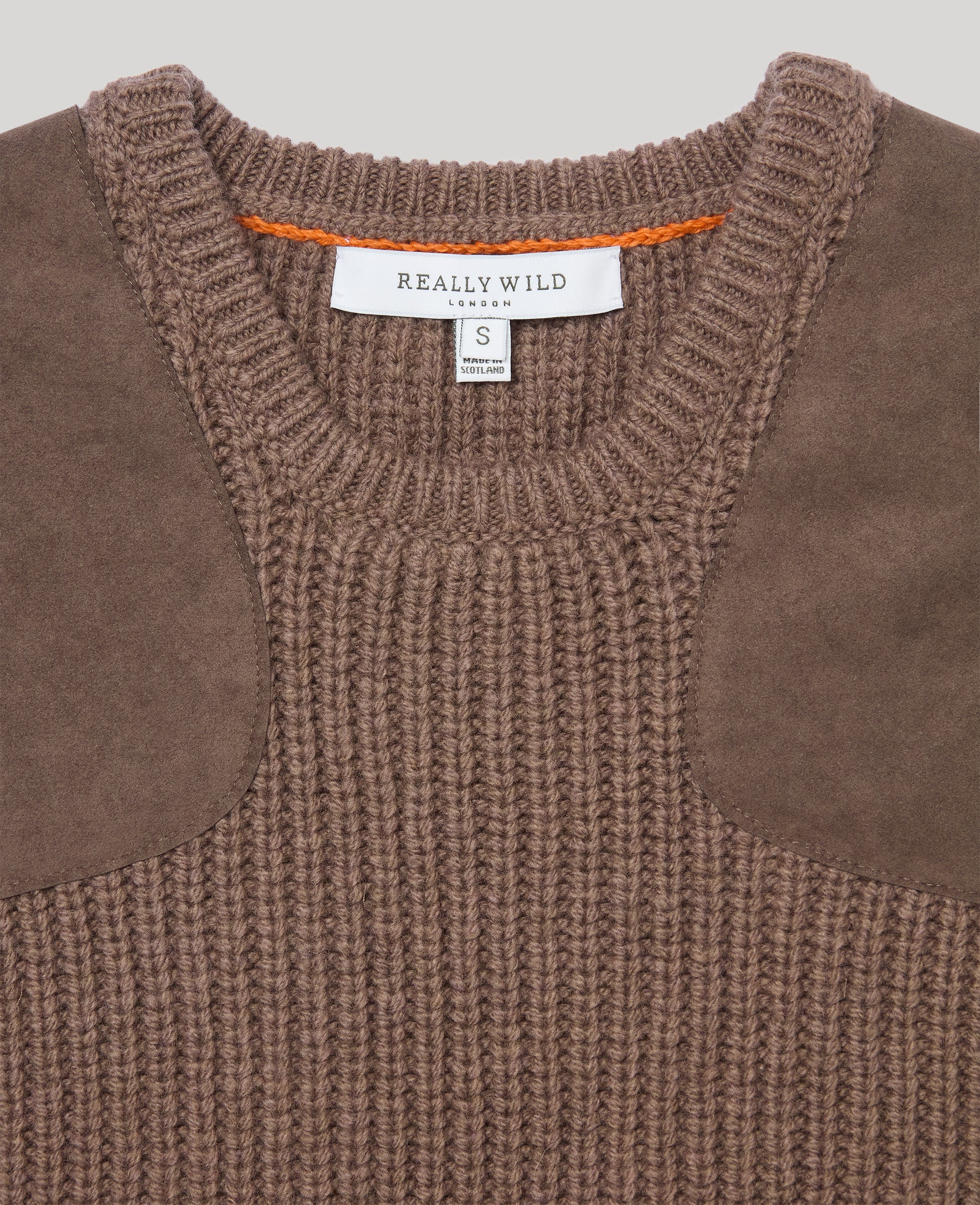 Made in Scotland from 100% supersoft knitted lambswool, our Kinalba tank in subtle mocha is designed with a classic crew neck. Intended for warmth and layering in the field and finished with Alcantara shoulder detailing for extra durability. Pair with our Highlander Field Coat, our Beaufort Parka and any of our utility trousers.