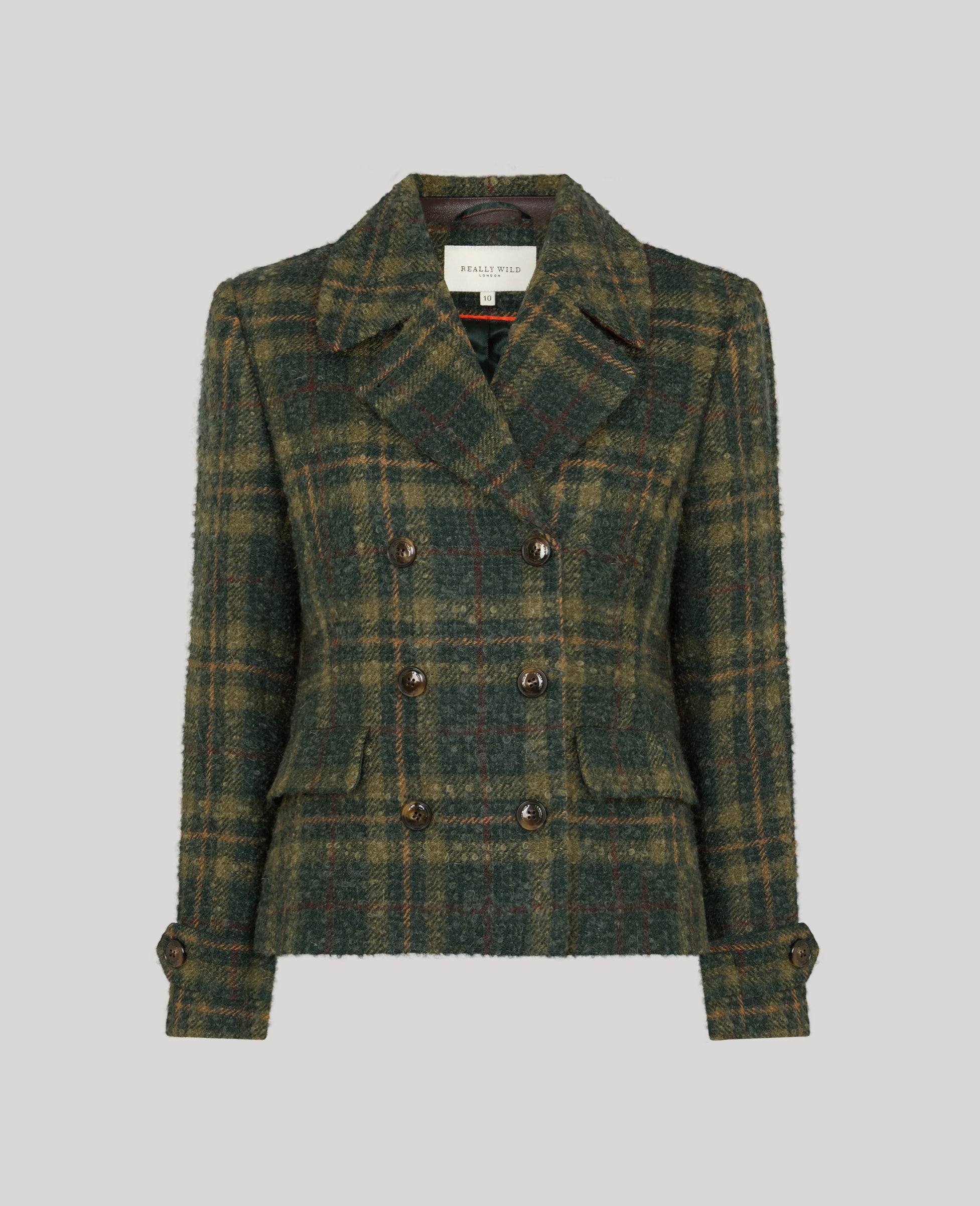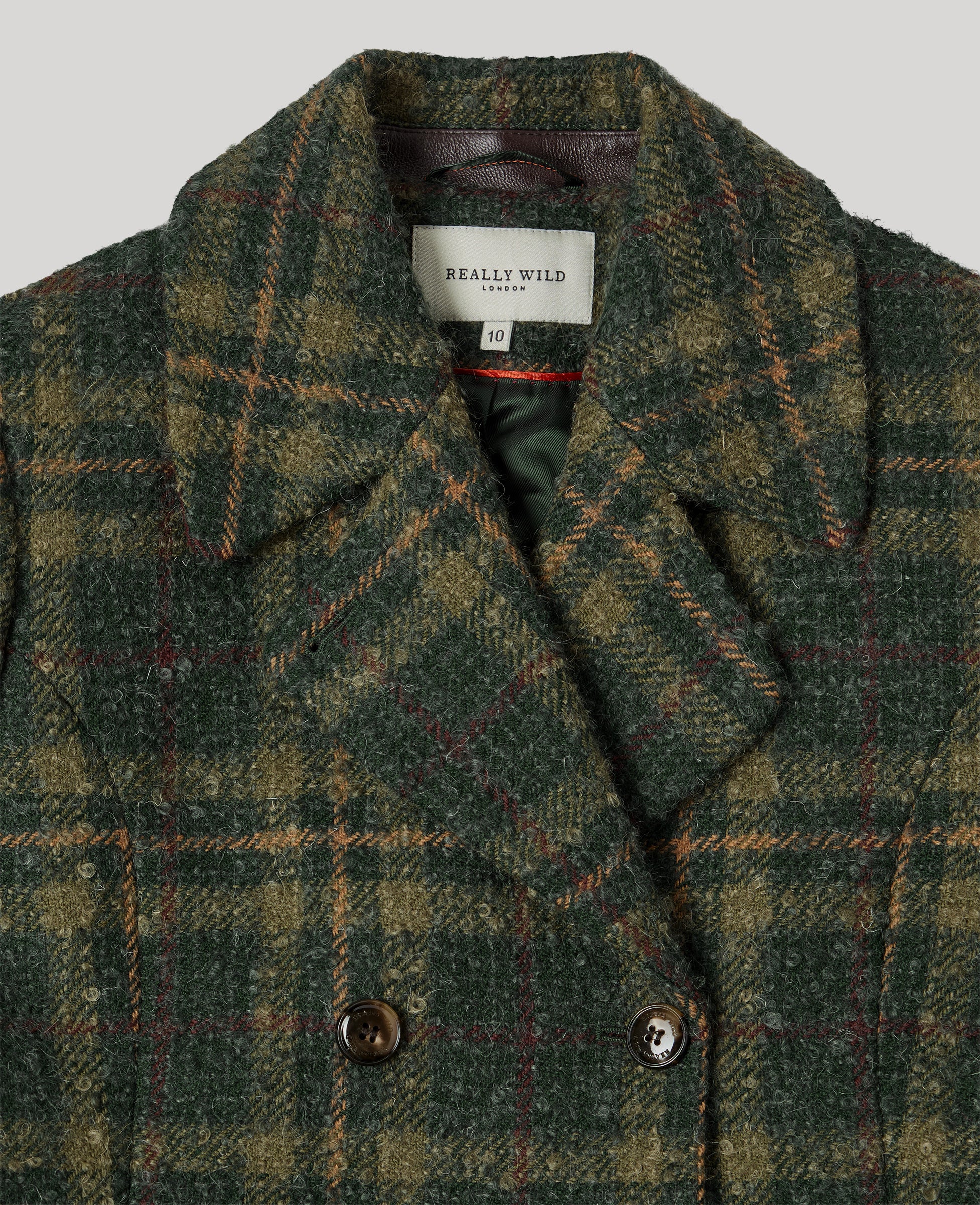 Lansdowne Check Pea Coat, Mohair mix - Green and Ochre Check