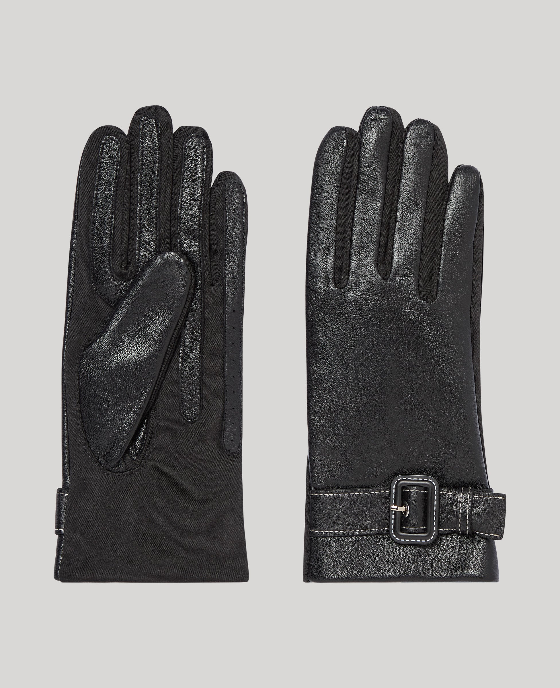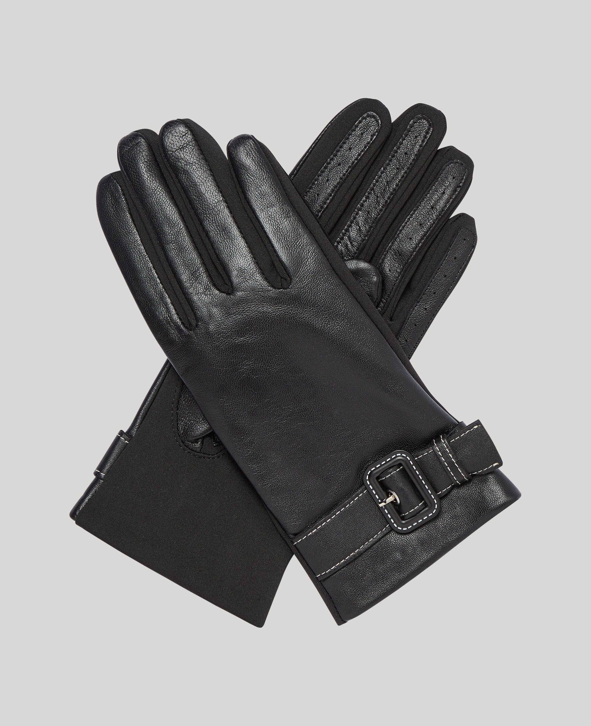A timeless blend of elegance and ease, our Lyla Gloves are crafted from supple leather and soft stretch fabric for a contoured fit. Lightly treated to offer protection against the elements. Finished with a statement buckle and subtle contrast stitching, they're the perfect finishing touch for both town ad country dressing.