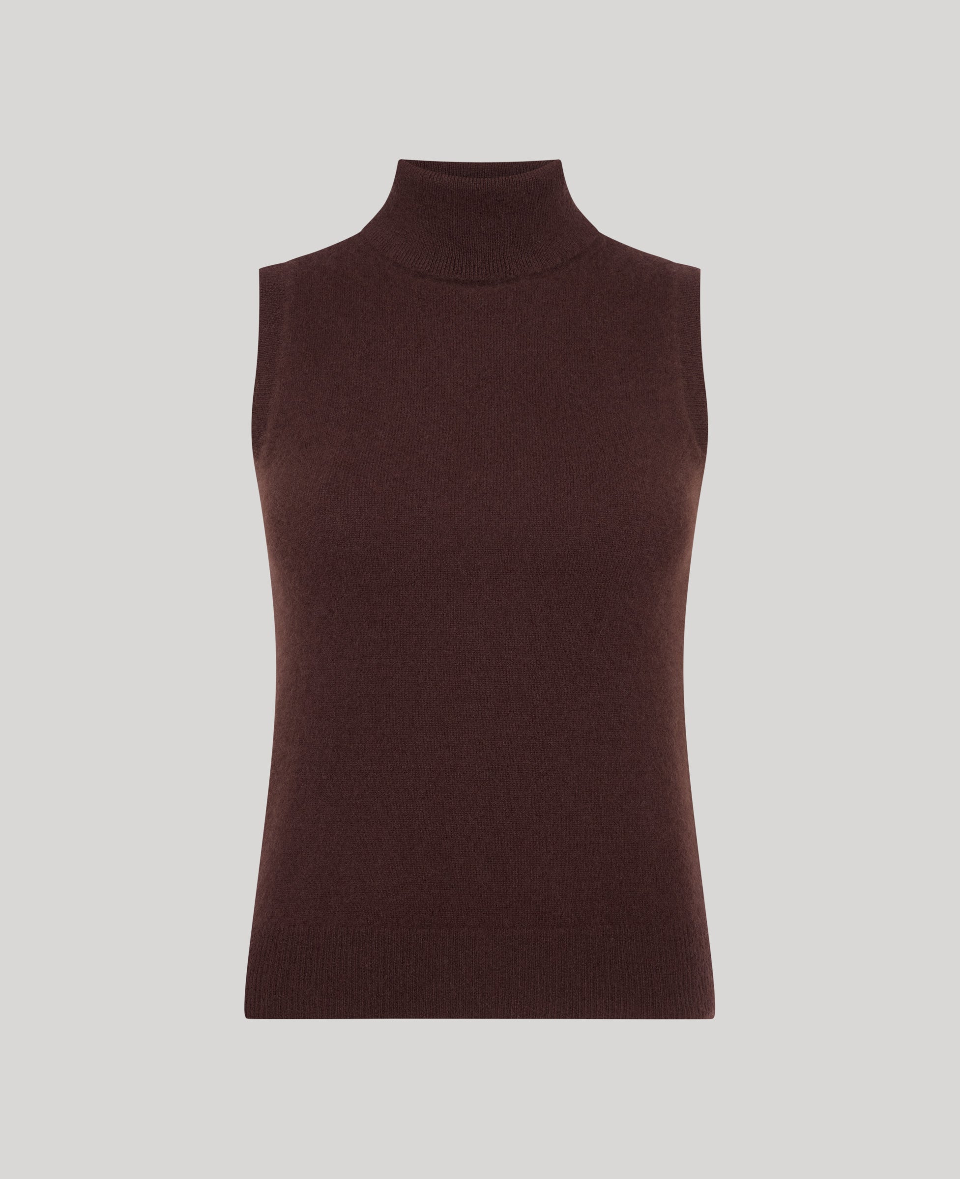 Made from 100% cashmere, our Madeline roll-neck tank in rich chocolate is luxuriously soft - designed to be worn as a separate or teamed with our Kensington jacket for a smart layered look and elegant evenings in the country.