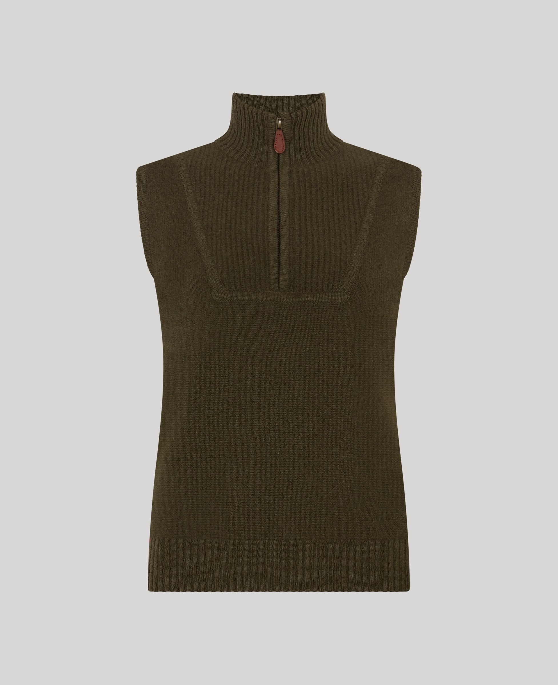 Made from 100% cashmere, our Madeline Tank in autumnal green is an ideal layering piece for days out in the field. Style under our field coats and parkas for additional warmth when braving the elements. Features a leather tab on the zip and rib yoke detail at the front. Pair with our silk shirts or corduroy Spencer Shirts - a perfect lightweight travel companion.