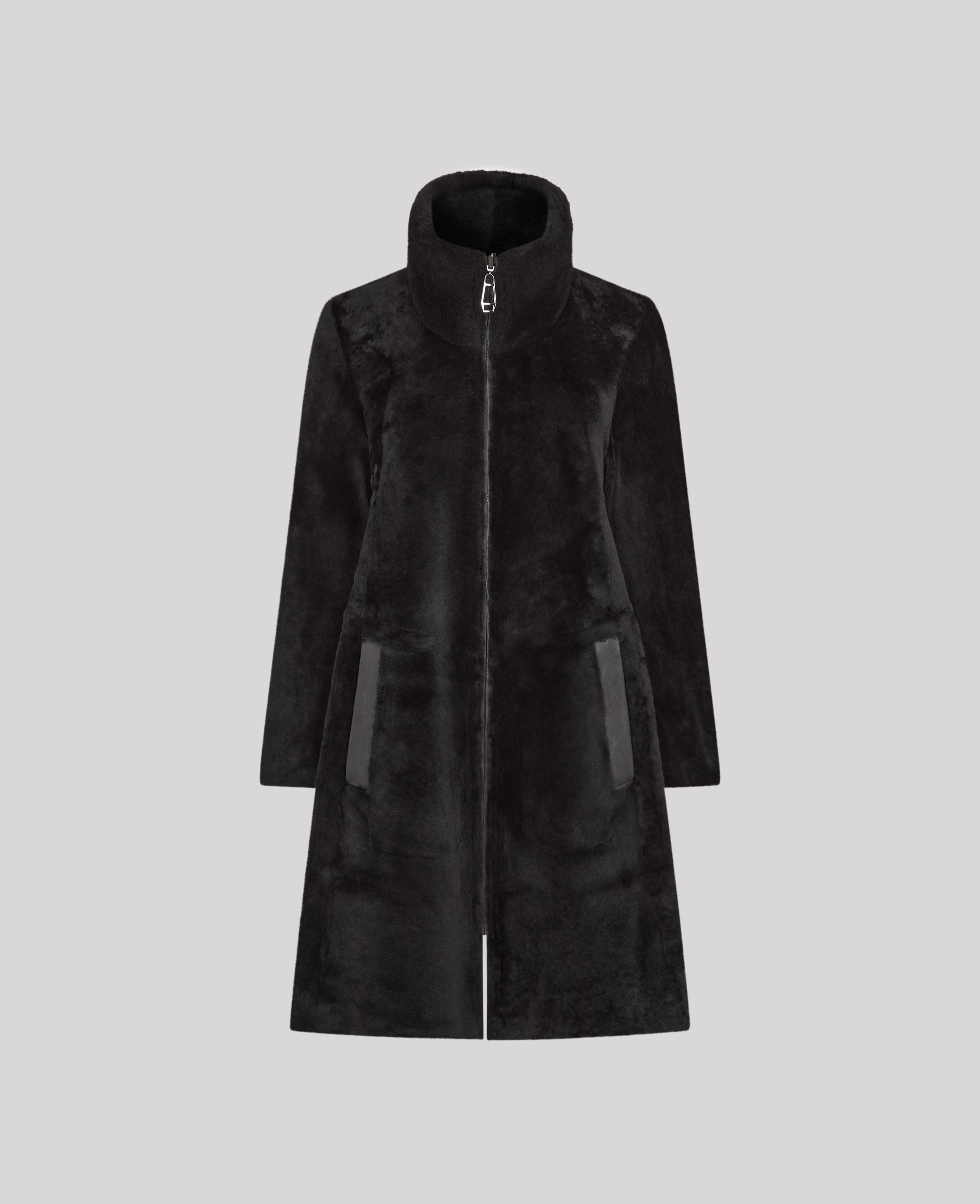 Crafted from 100% premium shearling, this reversible swing coat combines exceptional warmth with effortless sophistication. In deep black, it brings a touch of refined drama to cold weather dressing. The soft shearling offers exceptional warmth, while the relaxed silhouette and zip fastening ensure effortless wearability. With practical front pockets and a fully reversible design, it's a versatile investment piece that transitions seamlessly from countryside weekends to city evenings.