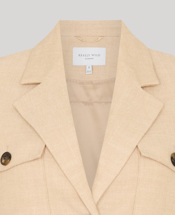 Inspired by classic safari styling, the silhouette is tailored yet relaxed, creating a refined shape that moves effortlessly between countryside and everyday wear. The wool lends gentle structure, while the linen introduces a lighter, more breathable quality, ensuring ease without compromising on polish.
