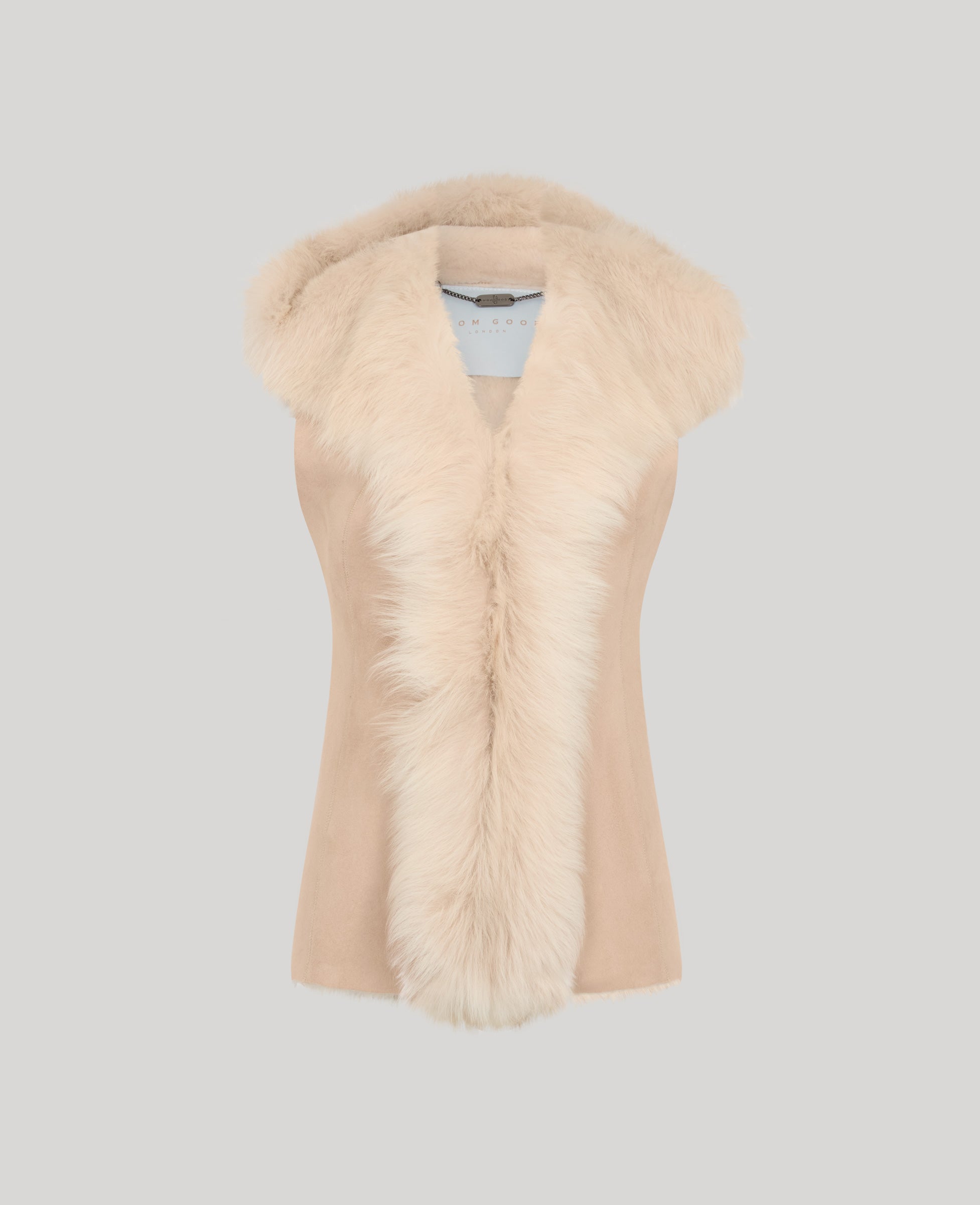 This soft shearling gilet is the ultimate layering piece. In rich cream sheepskin, it's a perfect for wearing over our swansdown Lambswool High-Neck Sweater, adding warmth and texture to your look. Crafted in England by skilled artisans, it's finished with a relaxed hoot and simple hook fastening. A timeless forever piece for the colder months.