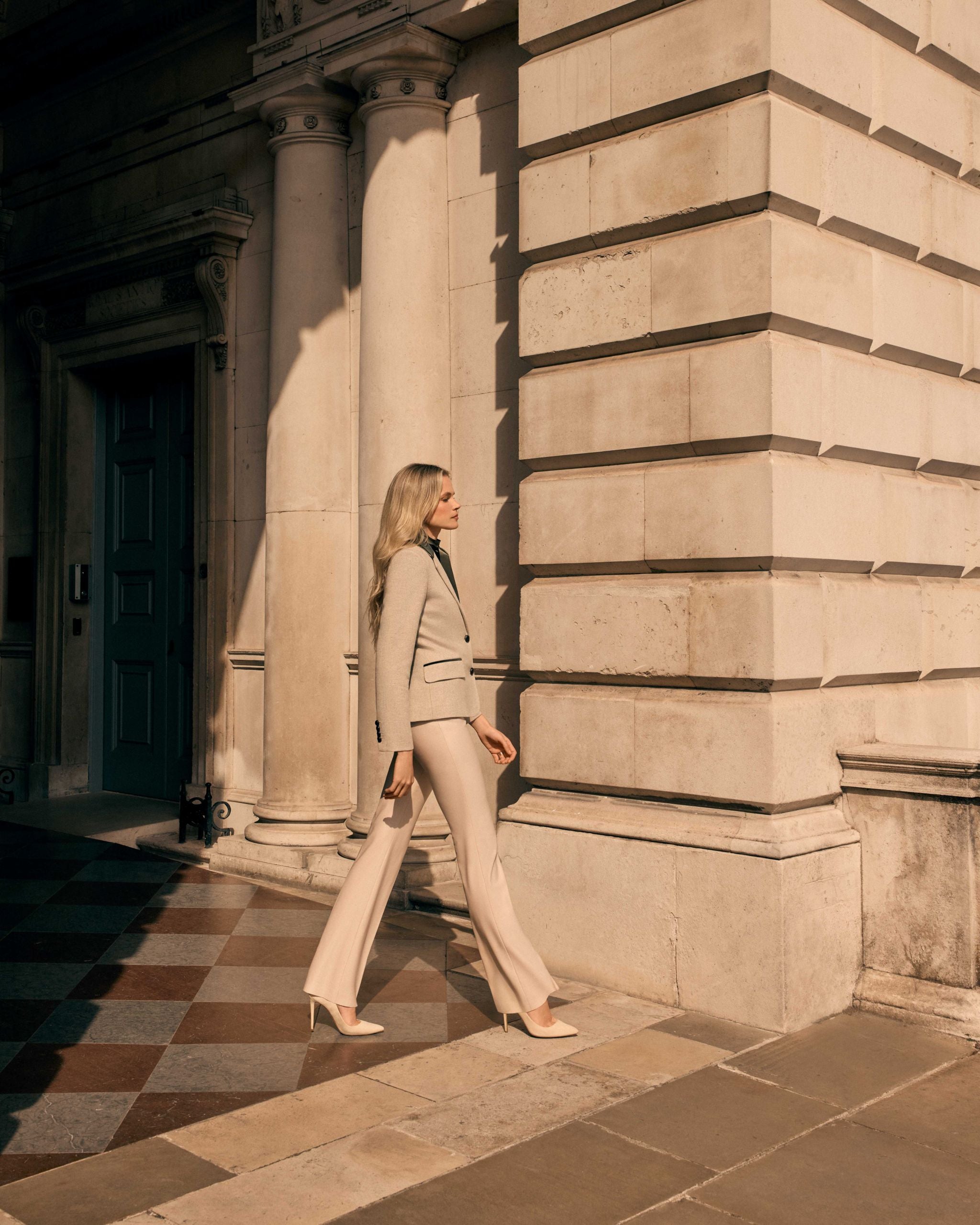 Timeless, elegant and rooted in refined tailoring, this piece is designed to flatter the feminine silhouette with softly structured shoulders and precise detailing for a polished finish. The neutral palette enhances its versatility, allowing it to integrate seamlessly into both countryside and city wardrobes.